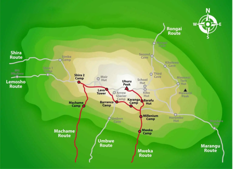 Called the “Coca-Cola” route, it’s favored by less experienced climbers who prefer the comfort of huts over tents. This has led to the misconception that it’s easier, but the brief duration leaves little time for acclimatization, resulting in a lower summit success rate. To increase the chances of success, a 6-day climb is advised.